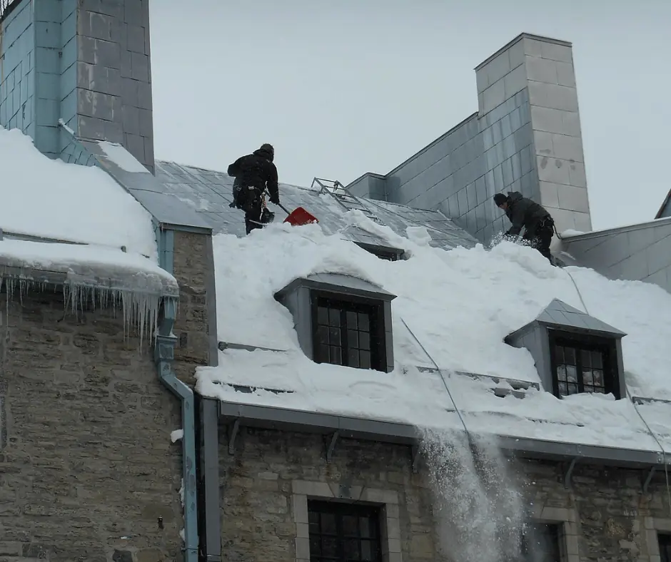 Toitures FMB, spécialiste en toiture résidentielle, vous offre un service professionnel de déneigement pour prévenir les dommages causés par le poids de la neige et la formation de glace.